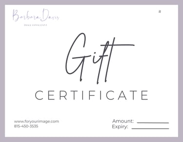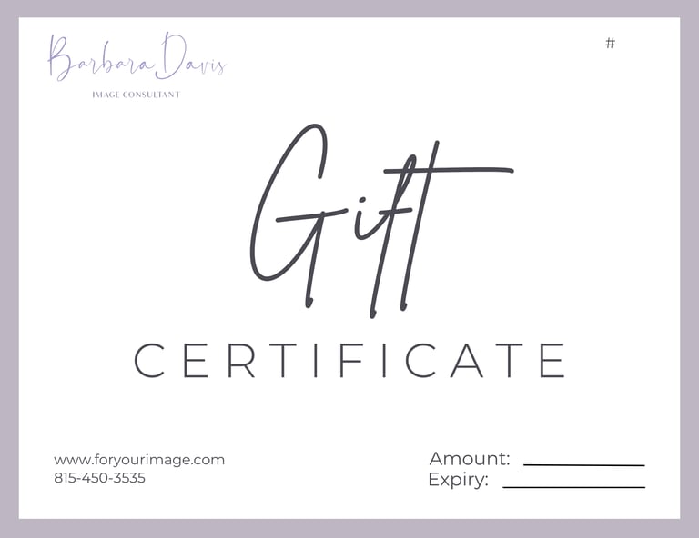 A Gift Certificate from Image Consultant, Barbara Davis is a thoughtful way to give an experience that lasts. Perfect for friends, family or colleagues for birthdays, holidays, or any special occasion.