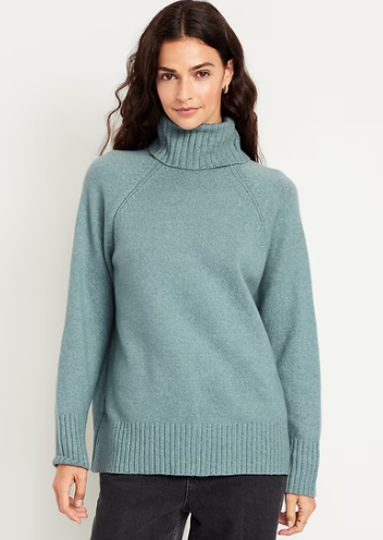 Tip: Choose a sweater that skims the body and doesn’t fall below the hips.